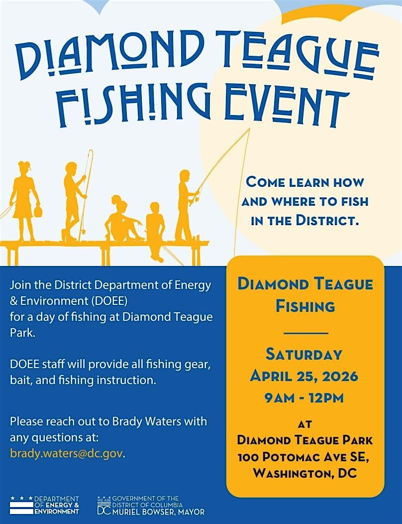 Our staff will provide all fishing gear, bait, and fishing instruction. Please reach out to Brady Waters with any questions at brady.waters (at) dc.gov