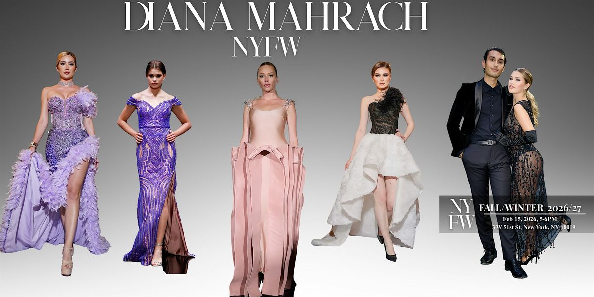 Diana Mahrach Proudly Presents Winter/Fall 2026-2027 Couture Collection.An extraordinary new couture collection, entirely brand new, crafted for the most discerning eyes. This season reflects Diana Mahrach's unwavering dedication to high-end couture, exceptional craftsmanship, and distinctive design that stands apart from all others. Renowned internationally for elegance and couture experience, Diana Mahrach continues to redefine luxury fashion- offering only the best, for the best. You are cordially invited to attend our exclusive debut presentation.