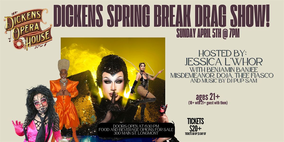 🏳️🌈 Welcome to the Dickens Drag Show! Get ready for a fabulous evening filled with glitz, glamour, and jaw-dropping performances. Join us on Sun, April 5th, 2026 at 7:00 PM at the Dickens Opera House on Main Street in Longmont, CO, USA.
