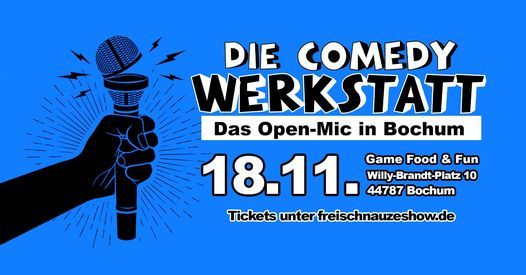 Die Comedy Werkstatt ist im November wieder in Bochum!Hier können bekannte Comedians und blutjunge Newcomer ihre neuen Gags testen. Comedy ist ein Handwerk und benötigt deswegen einen Ort, an dem ausprobiert werden kann.