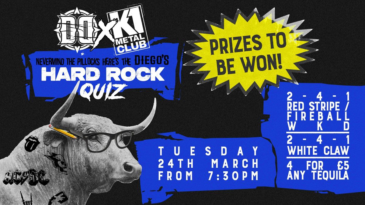 Nevermind the pillocks, here's the DIEGO'S HARD ROCK QUIZ...π€π½Join us on the 25th March for the ultimate rock/metal quiz!