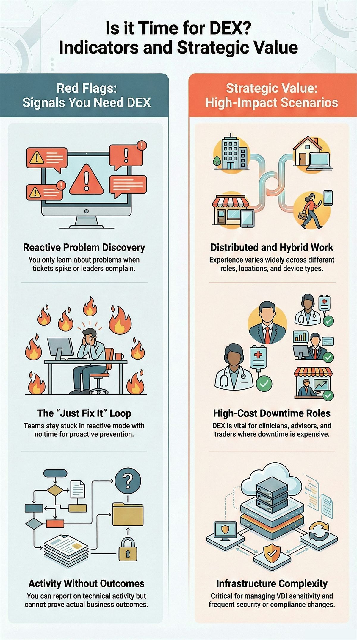 A small, hosted dinner for a select group of IT leaders to get a clear, practical introduction to Digital Employee Experience (DEX) and Digital User Experience across the organization. This is a leadership-level discussion focused on outcomes: reducing firefighting, improving reliability, and making the user experience measurable and manageable.