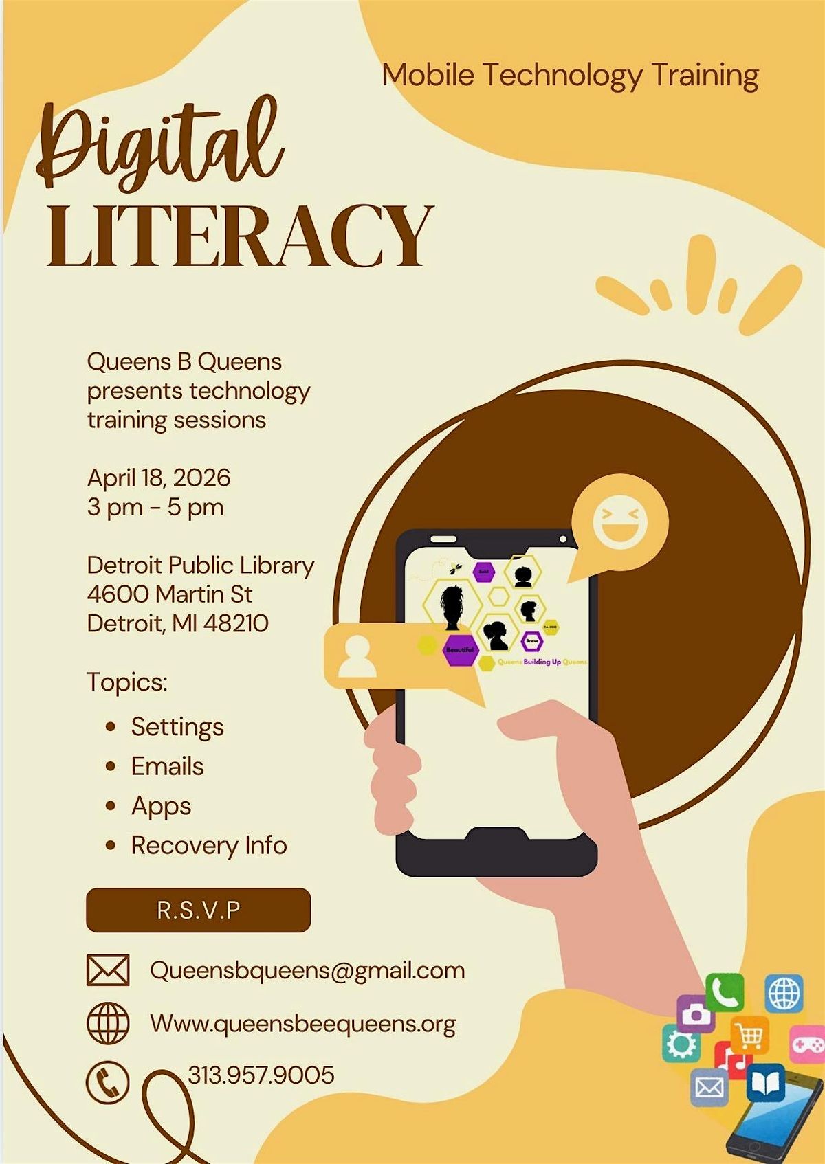 Join us for a fun and interactive in-person event all about boosting your digital literacy and mastering the latest mobile technology. Whether you're a newbie or just looking to sharpen your skills, this is the perfect spot to learn, share, and connect with others who love tech! Don't miss out on hands-on experiences and cool tips to up your digital game.