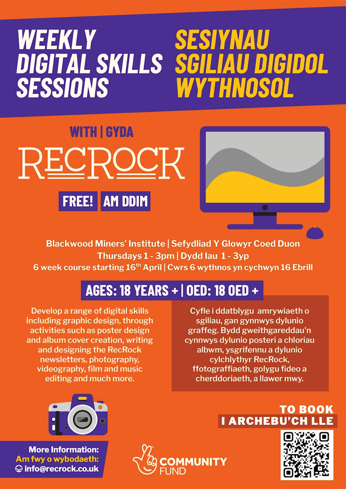 Datblygwch amrywiaeth o sgiliau digidol gan gynnwys dylunio graffig, trwy weithgareddau fel dylunio posteri a chreu clawr albwm, ffotograffiaeth, fideo, golygu ffilm a cherddoriaeth a llawer mwy.