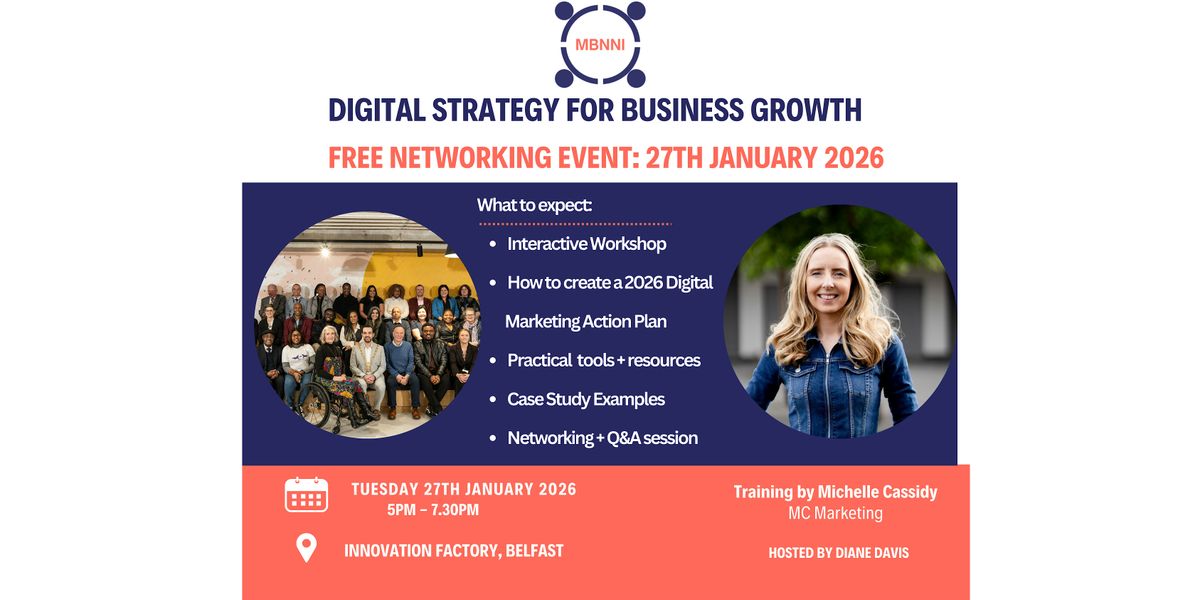 Register now for MBNNI’s upcoming Digital Strategy for Business Growth workshop, taking place at the Innovation Factory, Belfast, next week.