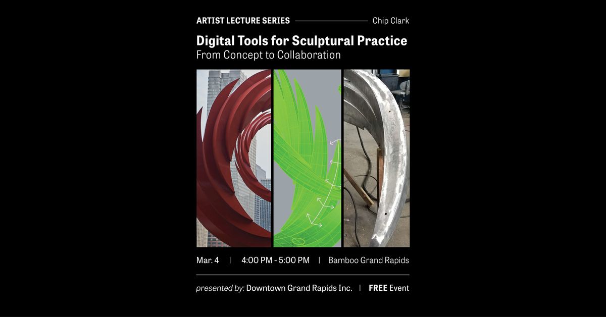 How do artists transform sculptural ideas into built reality? This lecture explores therole of digital tools in bridging creativity and execution for large-scale installations. Drawing on his experience as a designer and fabricator, Chip Clark will address high-level workflows that help artists visualize concepts, coordinate multidisciplinary teams, and translate complex forms into fabrication-ready processes.