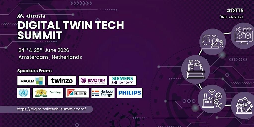 Amsterdam, Netherlands – 24th & 25th June 2026 – The highly anticipated Digital Twin Tech Summit 2026 is set to take place at the prestigious Park Plaza Victoria Amsterdam, bringing together global industry leaders, innovators, and technology experts for two days of deep insights, collaboration, and real-world applications of digital twin technology.