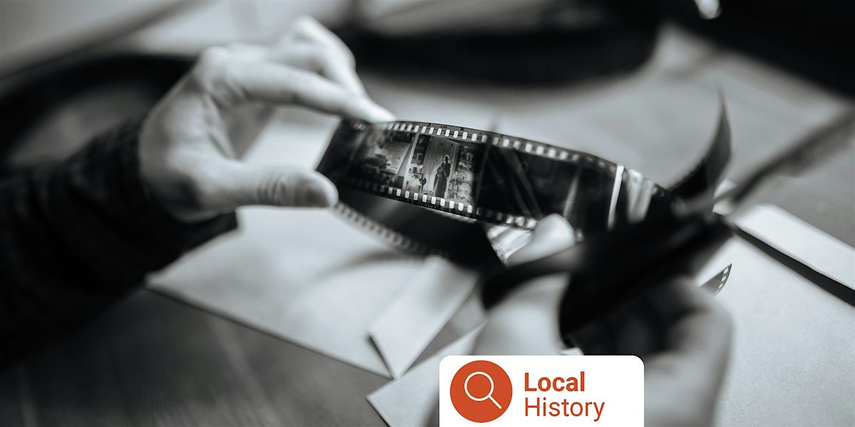 [ Image description: A closeup of person looking at slide reel. Text reads: Local history]