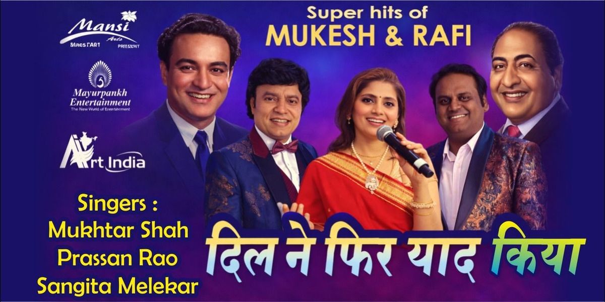 Celebrate the Golden Era of Bollywood with a soulful musical evening dedicated to the legendary voices of Mohammad Rafi and Mukesh. Relive the timeless melodies that touched millions of hearts and defined an era of pure musical magic. From romantic ballads to heart-touching solos, this tribute show brings alive their iconic songs through live performances by talented singers. Let the nostalgia flow as we take you on a journey through unforgettable classics that continue to inspire generations. Join us for an enchanting night of melody, emotion, and memories – a true homage to two legends of Indian music.