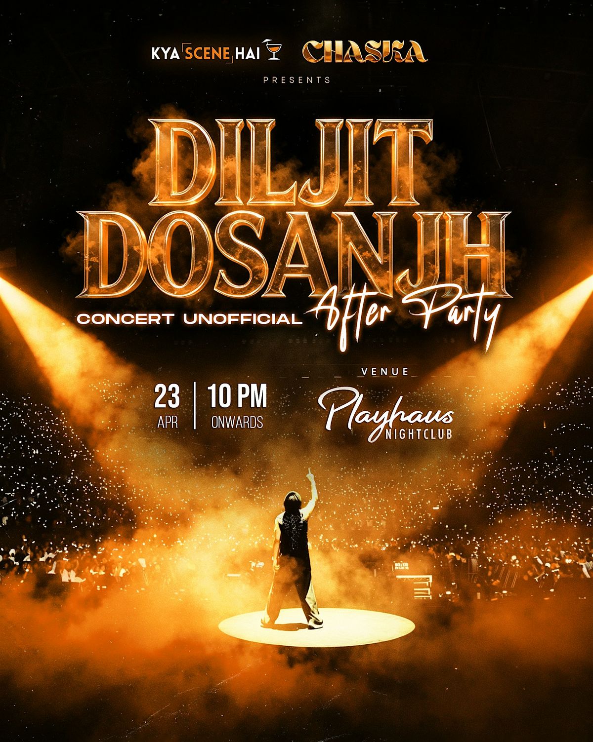 Right after, we’re taking over the city with the HOTTEST Concert Afterparty at Playhaus Nightclub — presented by CHASKA and Kya Scene Hai.