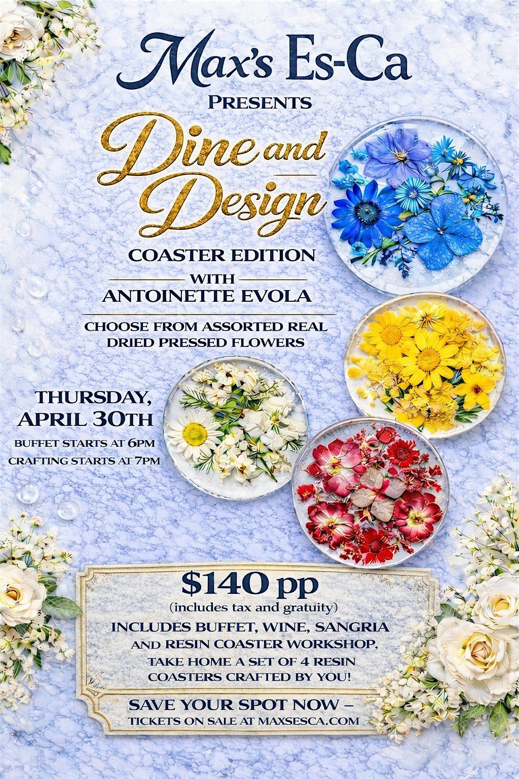 We’re serving up a full buffet, flowing wine & sangria, and a fun resin workshop where you’ll design and pour your own set of stunning coasters with your choice of real dried assorted flowers.
