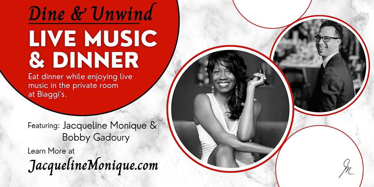Experience Dine & Unwind at Biaggi’s in Omaha, a one-of-a-kind night of live music & dining you won’t find anywhere else. Every 3rd Sunday, from 5–7 pm, enjoy an eclectic mix of songs from Jacqueline Monique on the mic & Bobby Gadoury on piano while you relax & enjoy dinner from Biaggi’s delicious Italian menu. Doors open at 4:30 pm. Come early, settle in, and let great music & great food create the perfect night out.