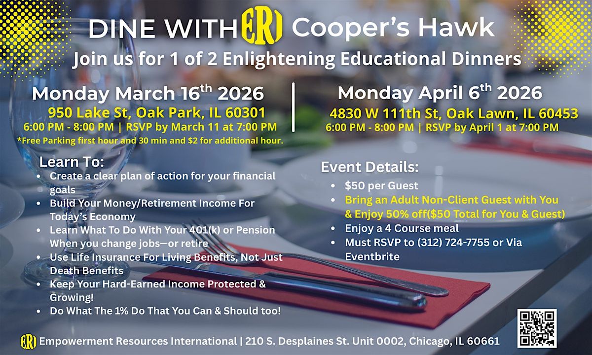 Join Empowerment Resources International (ERI) for an engaging financial education dinner at Cooper’s Hawk.