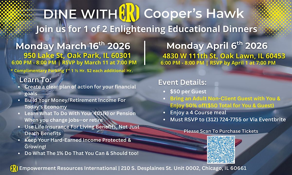 Join Empowerment Resources International (ERI) for an engaging financial education dinner at Cooper’s Hawk.