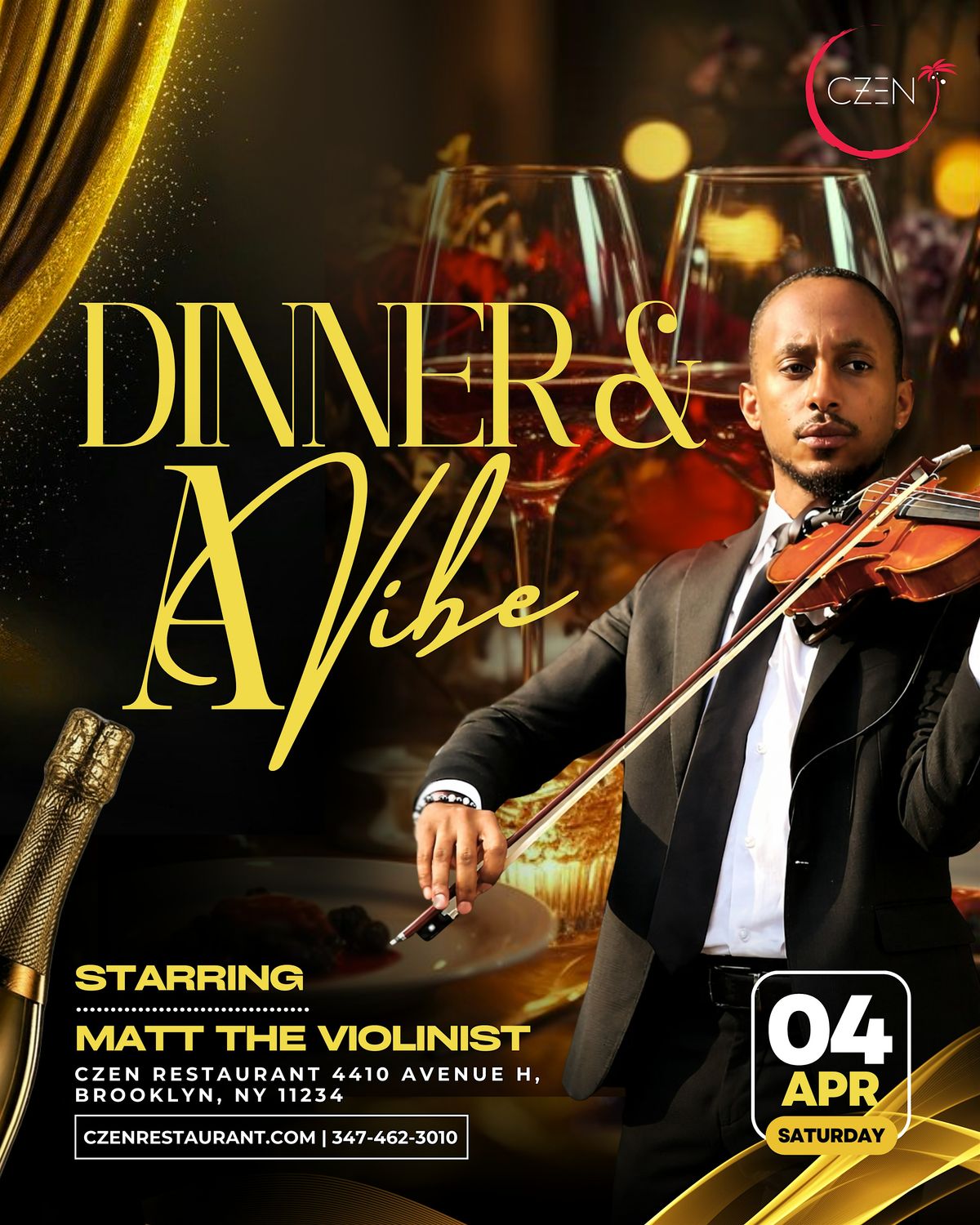 Looking for the perfect way to elevate your Easter Saturday? Join us for an unforgettable evening where fine dining meets soulful strings. We’re turning up the elegance at CZEN Restaurant for a night that is exactly what it sounds like: a total vibe.