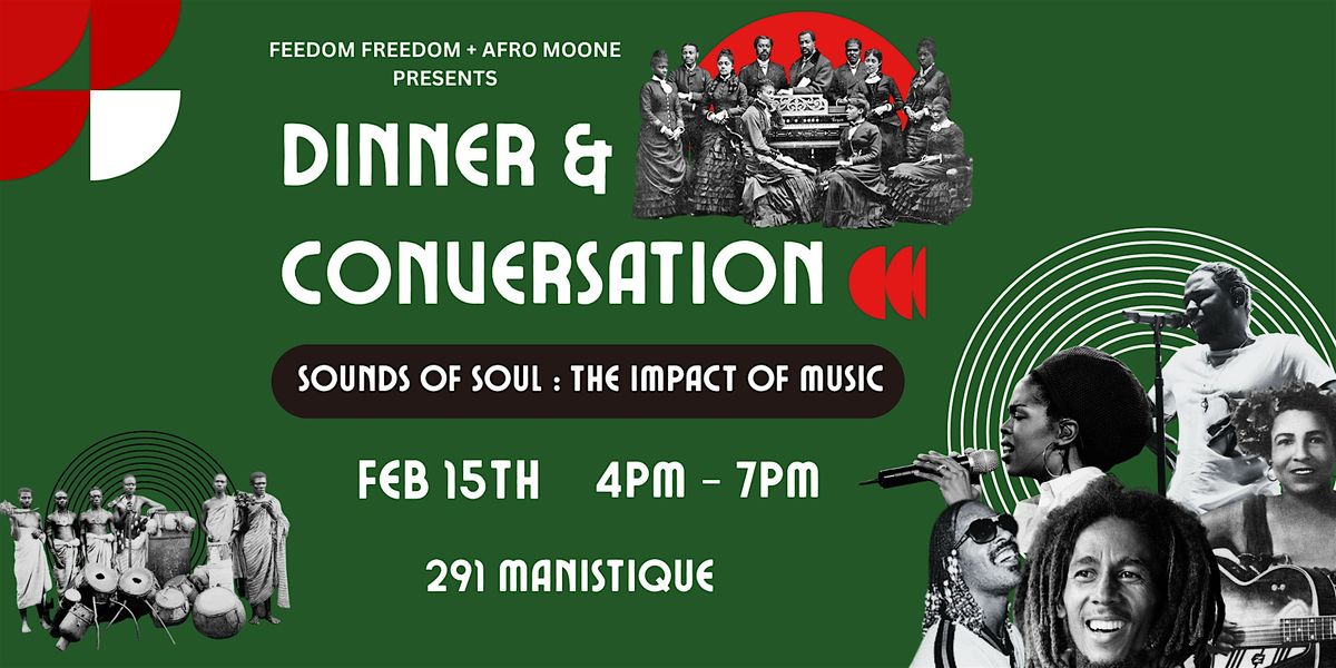 Happy Black History Month! This month, Dinner & Conversation explores the legacy of black music honoring the ancestral social and scientific impact that has created global influence. Join us for dinner courtesy of Feedom Freedom Growers Discussion & communal song building!
