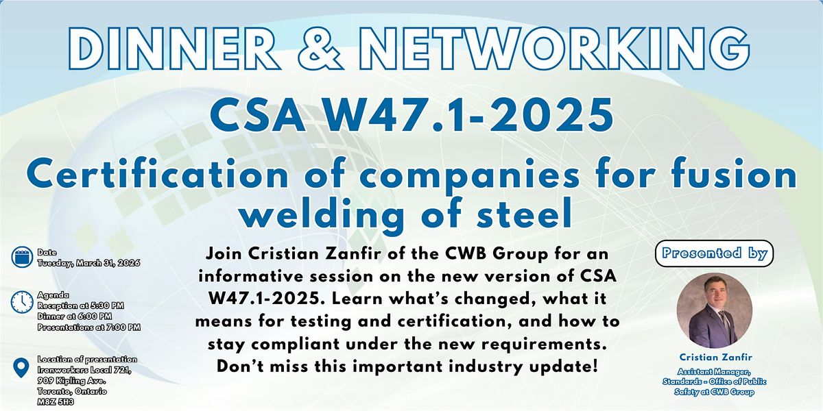 Dinner & Networking - CSA W47.1-2025(New Edition for 2026)