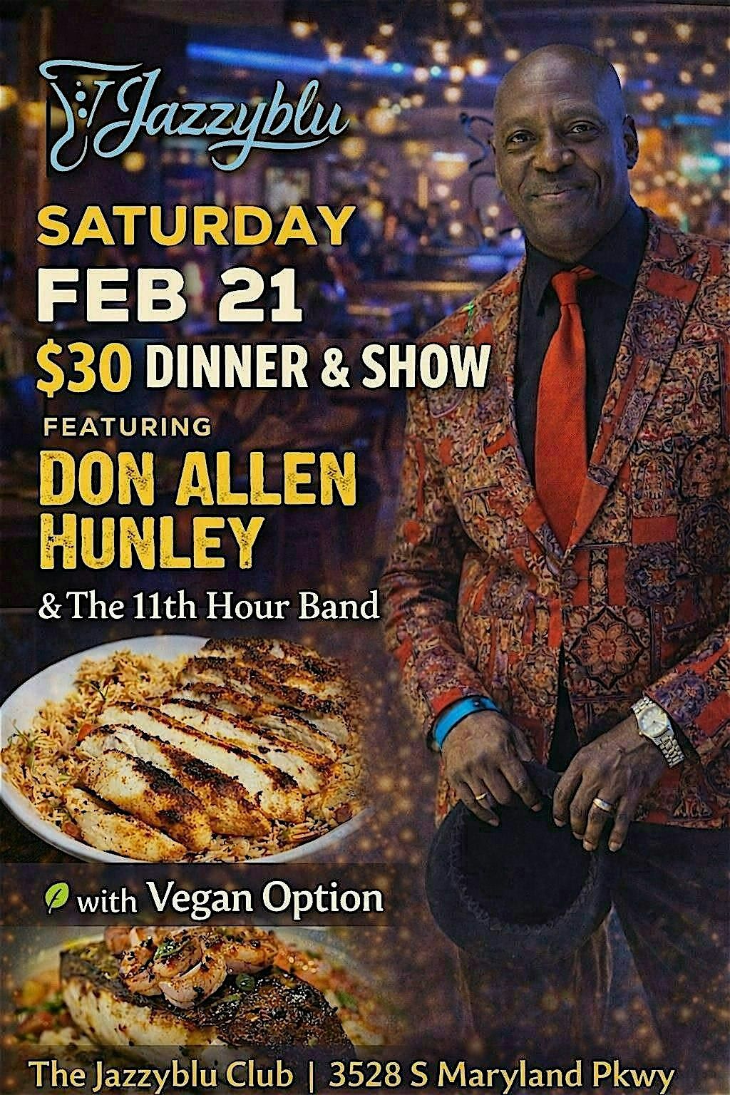 Dinner & Show At Jazzyblu featuring Don Allen Hunley & The 11th Hour