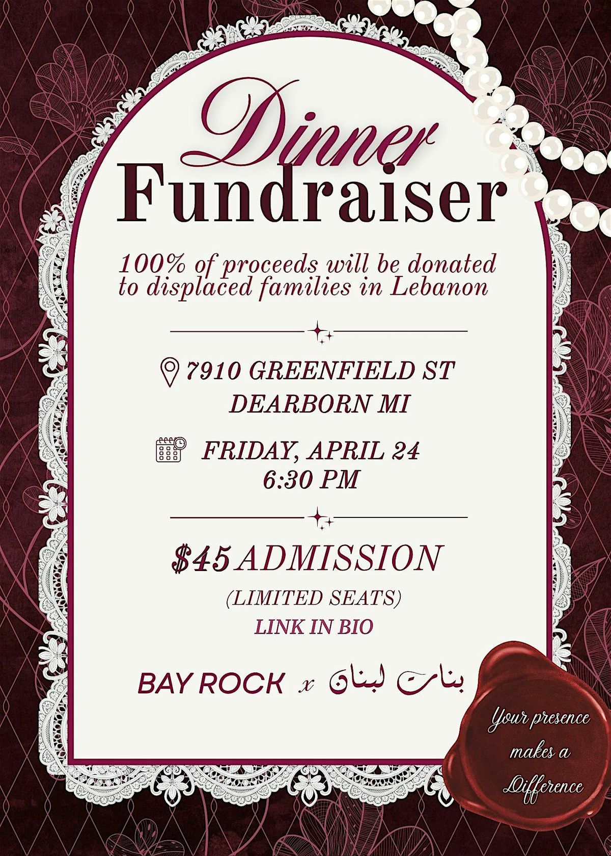 J oin us for an evening at 7910 Greenfield Rd on April 24, 2026 at 6:30 PM for a night of hope and solidarity as we come together to support displaced families in Lebanon. Our fundraising dinner will feature a delicious meal, inspiring stories, and opportunities to make a meaningful impact. Your presence will help bring comfort and relief to those who need it most.