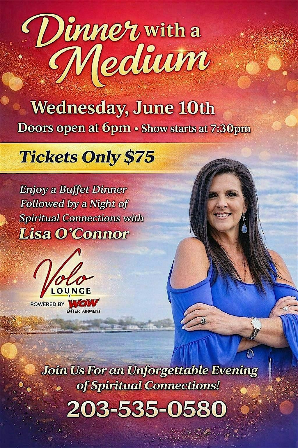 Dinner & live medium show with Lisa O’Connor at Volo Lounge. June 10, buffet 6PM, show 7:30PM. $75 tickets. Reserve now!