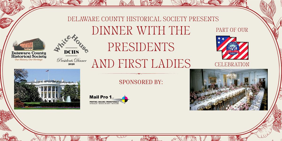 On February 21, 2026, the Delaware County Historical Society is hosting a memorable fund-raising event: Dinner with the Presidents and First Ladies. These dignitaries, who are represented by our talented re-enactors, will be seated at all dinner tables, and several of them will share their perspectives with our guests, during interesting after-dinner presentations. Our re-enactors are both highly informative and exceptionally entertaining!