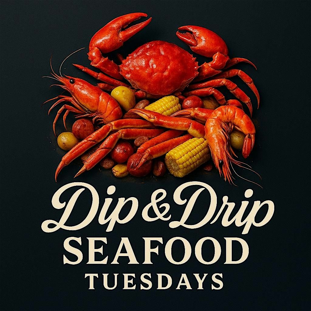 Ready to kick off your week with some serious seafood vibes? Join us in person for DIP & DRIP SEAFOOD TUESDAYS, where the freshest bites meet chill vibes. Dive into tasty dips, mouthwatering drips, and all the seafood goodness you can handle. Bring your friends, your appetite, and your fun spirit—this is the place to be every Tuesday!