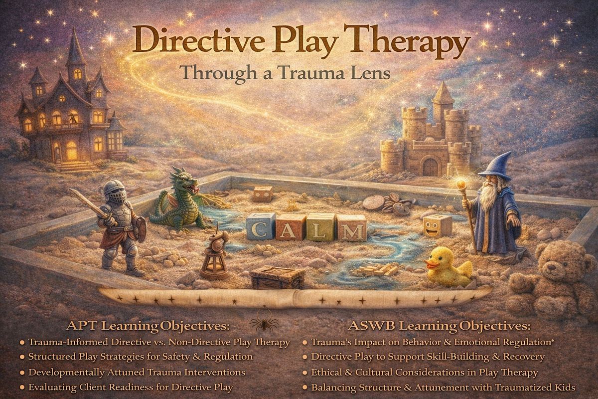 Directive Play Therapy Through a Trauma Lens is a trauma-informed training that examines the intentional use of structure, guidance, and therapist-led interventions in play therapy. While honoring child-led principles, this training explores when and how directive play can enhance safety, regulation, skill-building, and trauma processing. Participants will learn how to thoughtfully select directives based on nervous system states, developmental needs, and trauma responses. Experiential activities, case examples, and adaptable interventions are provided for work with children, adolescents, and caregivers.