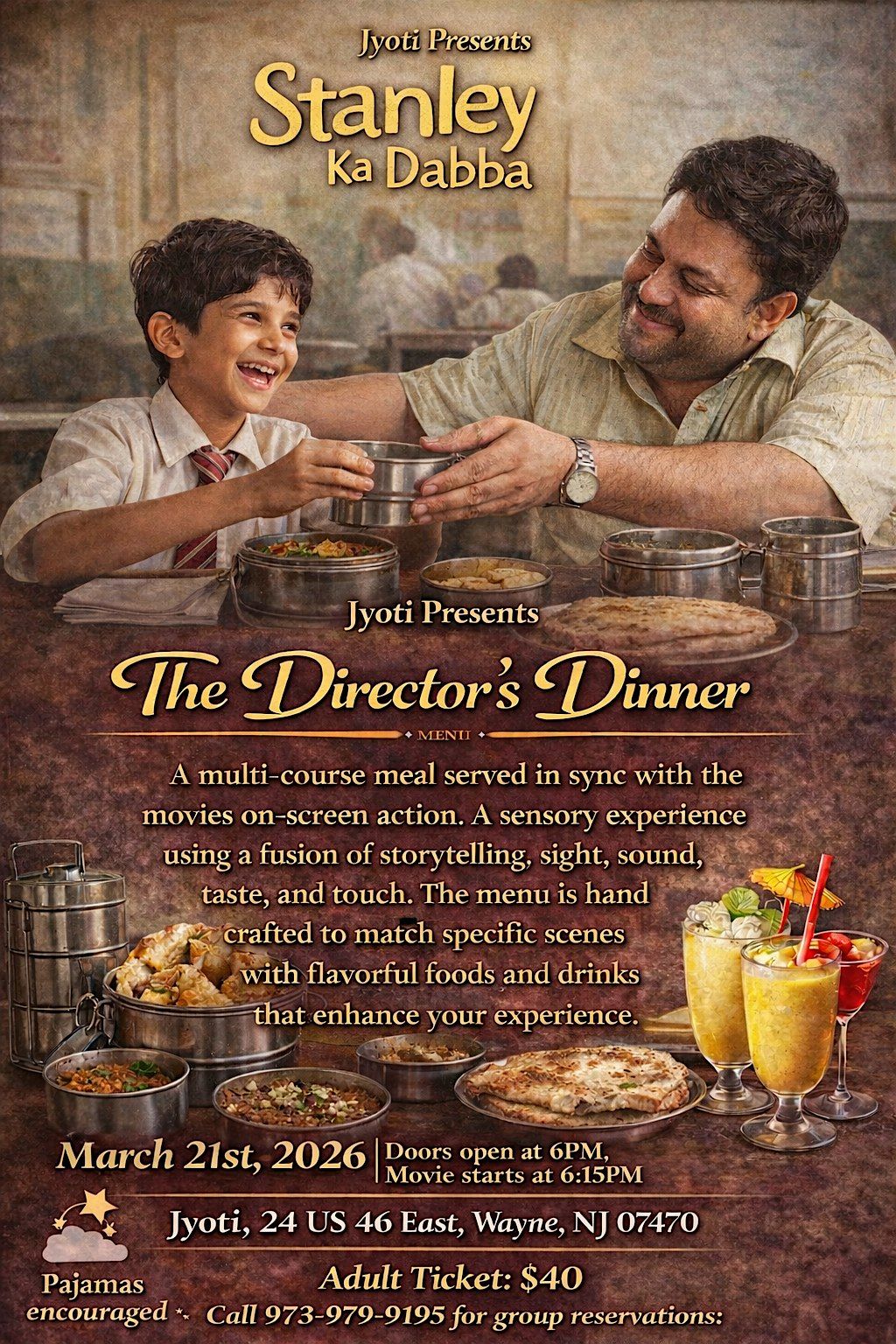 Join us in person for a casual and fun evening at Jyoti! This time, we're watching The Lunch Box! It’s the perfect chance to unwind, relax, and enjoy a multi-course meal served in sync with the movies on-screen action. A sensory experience using a fusion of storytelling, sight, sound, taste, and touch. The menu is hand crafted to match specific scenes with flavorful foods and drinks that enhance your experience