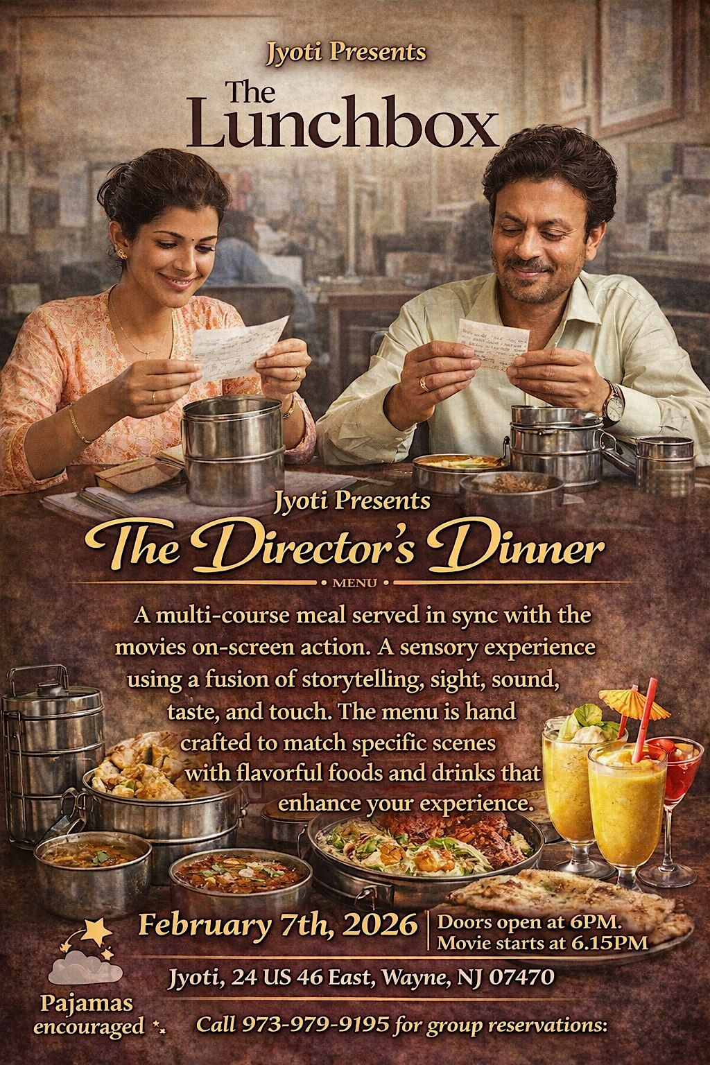 Join us in person for a casual and fun evening at Jyoti! This time, we're watching The Lunch Box! It’s the perfect chance to unwind, relax, and enjoy a multi-course meal served in sync with the movies on-screen action. A sensory experience using a fusion of storytelling, sight, sound, taste, and touch. The menu is hand crafted to match specific scenes with flavorful foods and drinks that enhance your experience
