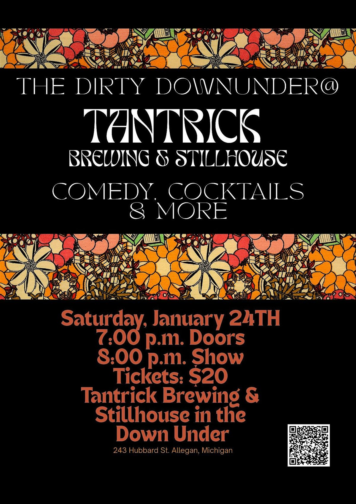 Come join us at Tantrick Brewing & Stillhouse in the DOWN UNDER for a night filled with laughter and delicious drinks. Get ready to unwind and enjoy a hilarious line up of comedians from all over.