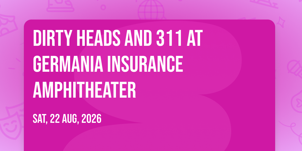 π Prepare to be amazed at Dirty Heads and 311 at Germania Insurance Amphitheater, the most anticipated gathering of the season! π Set against the stunning backdrop of Germania Insurance Amphitheater in vibrant Austin, TX, this event promises to redefine your expectations. π Mark your calendars for August 22nd, 2026 at 05:30 PM and get ready to immerse yourself in an atmosphere of wonder and excitement. β¨ From the moment you arrive, you'll be transported into a world where memories are made and stories come alive. They have crafted an experience that perfectly harmonizes entertainment, innovation, and community spirit. π Join us as we create moments that will be discussed for years!