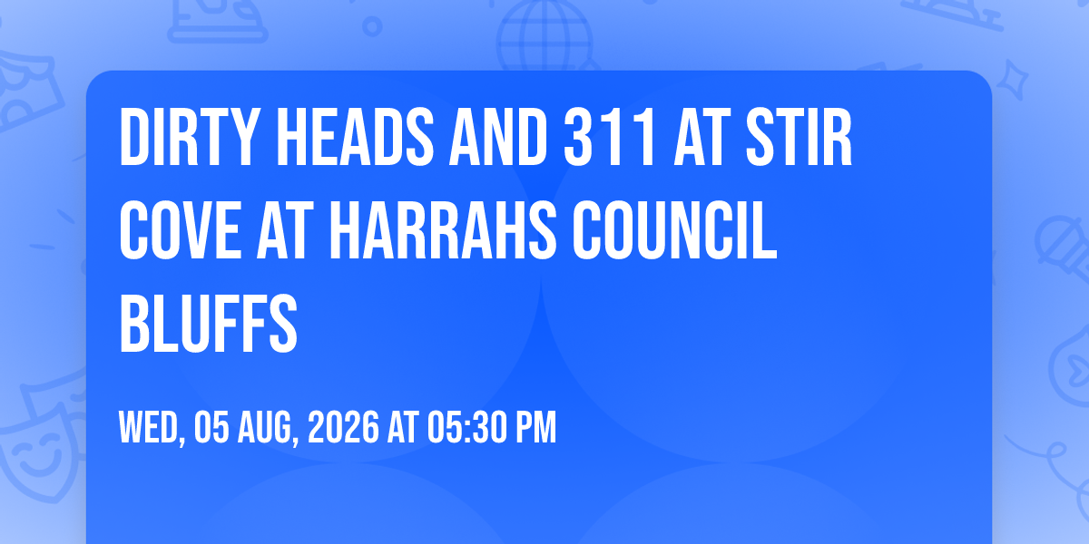 ✨ Enter a world of endless possibilities at Dirty Heads and 311 at Stir Cove at Harrahs Council Bluffs, where every moment tells a story! 🏛️ The stunning Stir Cove at Harrahs Council Bluffs in vibrant Council Bluffs, IA transforms into a realm of wonder on August 5th, 2026 at 05:30 PM. 🌟 They have crafted an experience that goes beyond the ordinary, combining elements of surprise, delight, and pure entertainment. Every detail has been thoughtfully considered to ensure your journey with us is nothing short of extraordinary. 🎯 Join fellow adventure seekers and memory makers in this celebration of imagination and innovation. 🎊 Reserve your spot today and be part of something truly special!