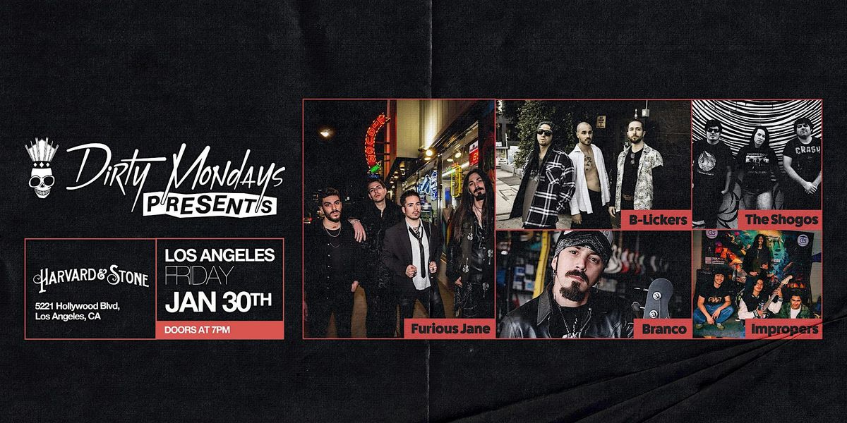A new kind of Concert Experience brought to you by Dirty Mondays (LA's most INSANE Monday night party). This night is a CURATED show like no other, bringing together premier, genre aligned bands on 1 stage and glueing everything together with the best Rock DJs in town! The Quality is HIGH, the Music is REAL... and you can bet you'll see the Dirty Crew in FULL FORCE!