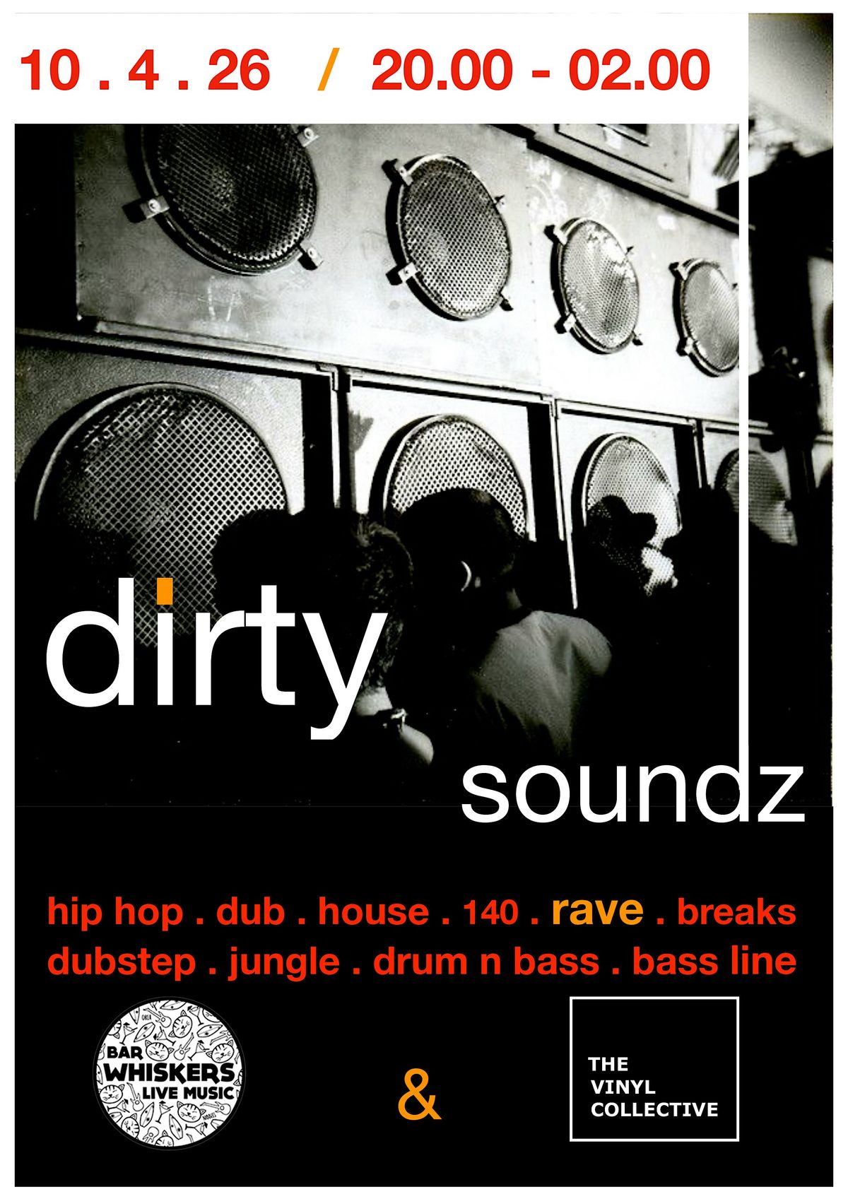 The Vinyl Collective OG’s bring the noise with Dirty Soundz to Whiskers. All vinyl set of rave, hardcore, dub, hip-hop, DnB/Jungle and more!