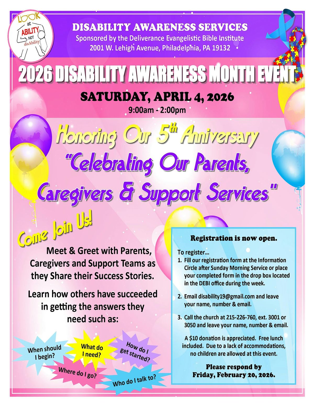 Disability Awareness Month Event ~ Honoring our 5th Anniversary