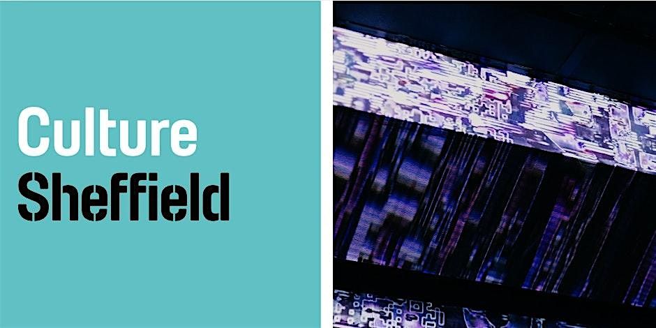 Image description: The Culture Sheffield logo appears next to an image of a projection falling across industrial piping in a night club.