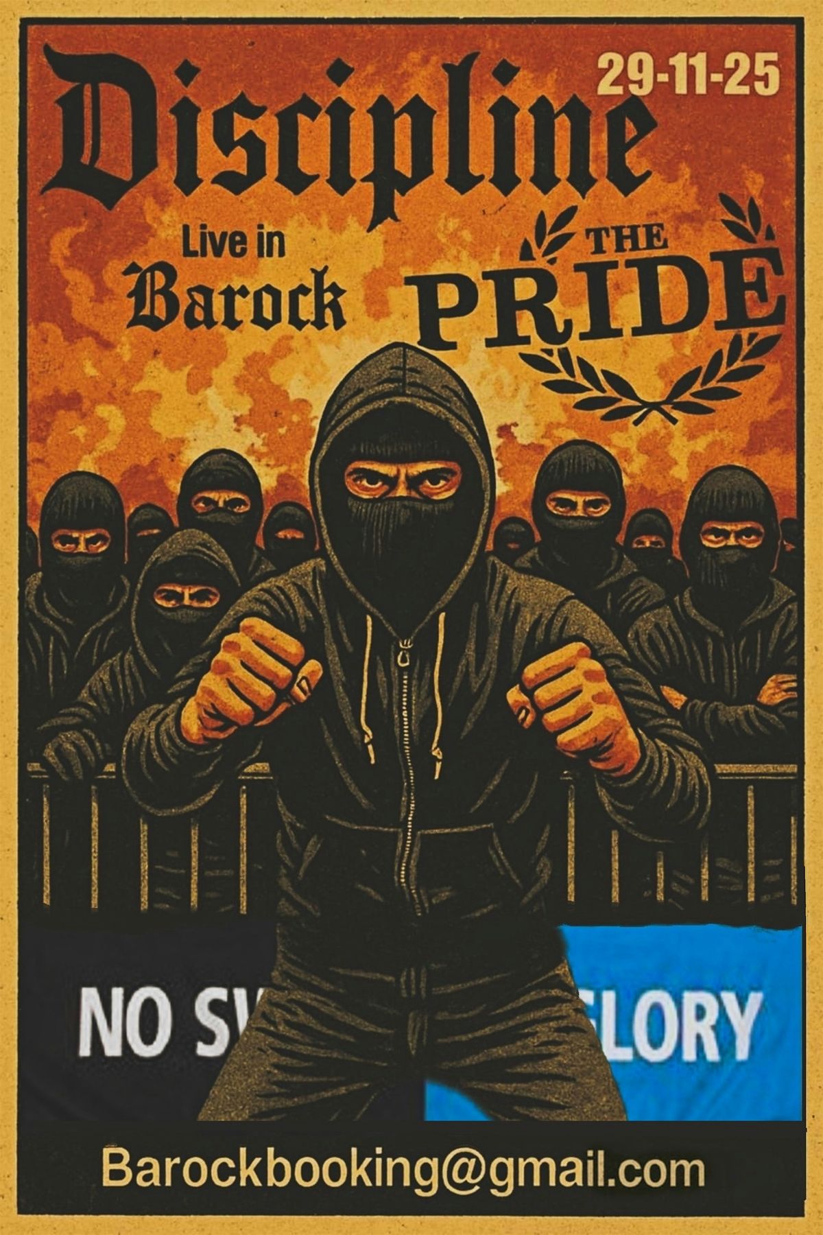 The 2 legendary bands Discipline (NL) & The Pride (Bruges) bring raw streetpunk, high-energy Oi! anthems & mosh pit vibes.