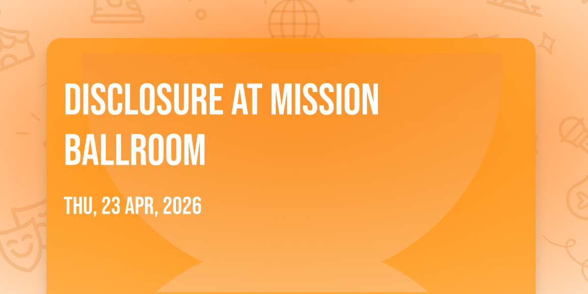 π Prepare to be amazed at Disclosure at Mission Ballroom, the most anticipated gathering of the season! π Set against the stunning backdrop of Mission Ballroom in vibrant Denver, CO, this event promises to redefine your expectations. π Mark your calendars for April 24th, 2026 at 08:00 PM and get ready to immerse yourself in an atmosphere of wonder and excitement. β¨ From the moment you arrive, you'll be transported into a world where memories are made and stories come alive. They have crafted an experience that perfectly harmonizes entertainment, innovation, and community spirit. π Join us as we create moments that will be discussed for years!
