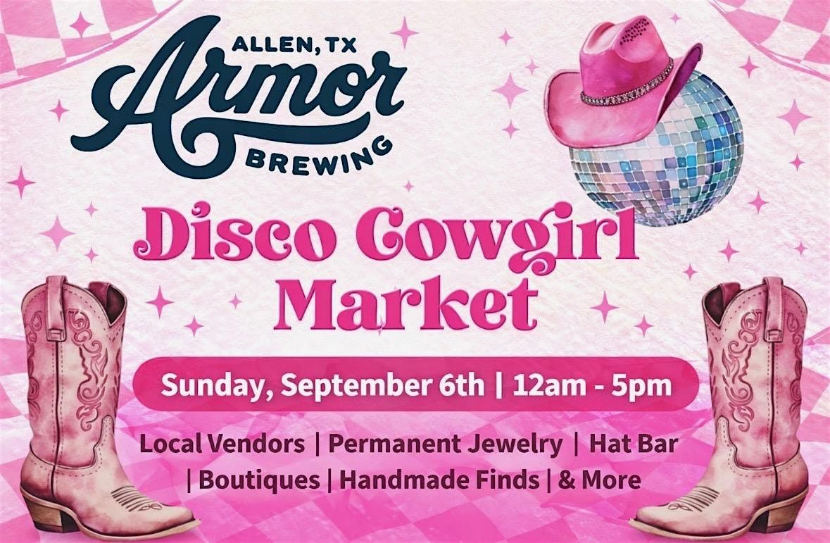 Join us for the Disco Cowgirl Market at Armor Brewing Co. on Sunday, September 6th from 12–5PM for the ultimate mix of western flair and groovy fun!