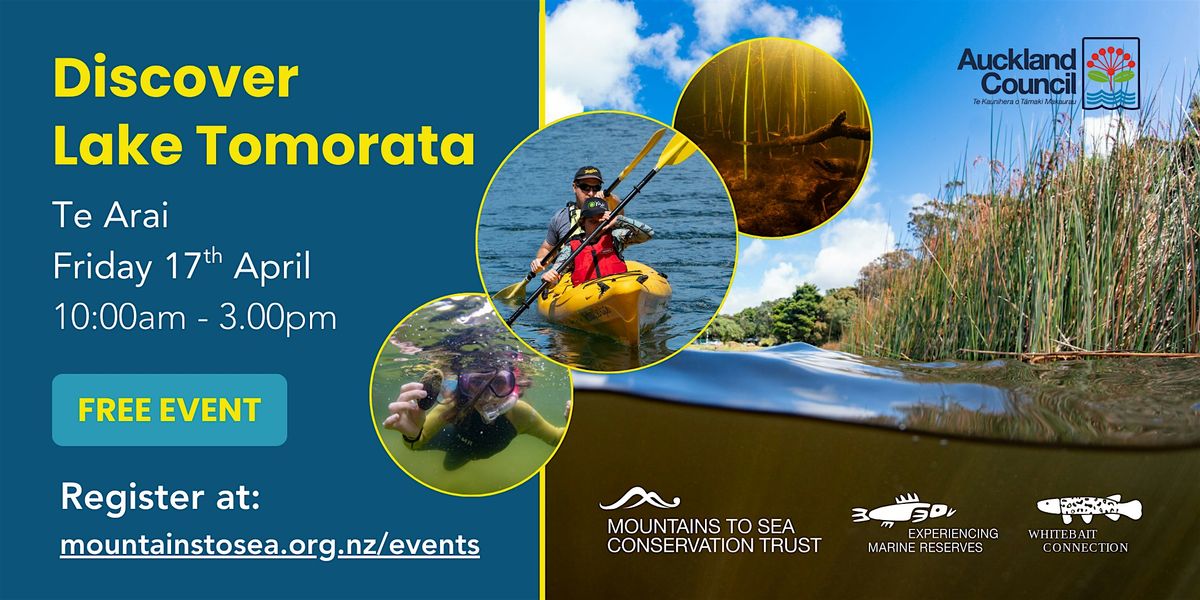 Come Explore Lake Tomorata with this fun free family friendly event! With funding from the Auckland Council and Foundation North we will be running a fun filled day of lake exploration! Join us for a day of guided kayaking with Auckland Sea Kayaks, snorkelling and freshwater workshop with Mountains to Sea Conservation Trust, and pest surveying with Auckland Council Biosecurity and Waikato University. Learn how to protect this vulnerable lake from freshwater pests like golden clam. Fun for the whole whānau. Koha - donations appreciated.
