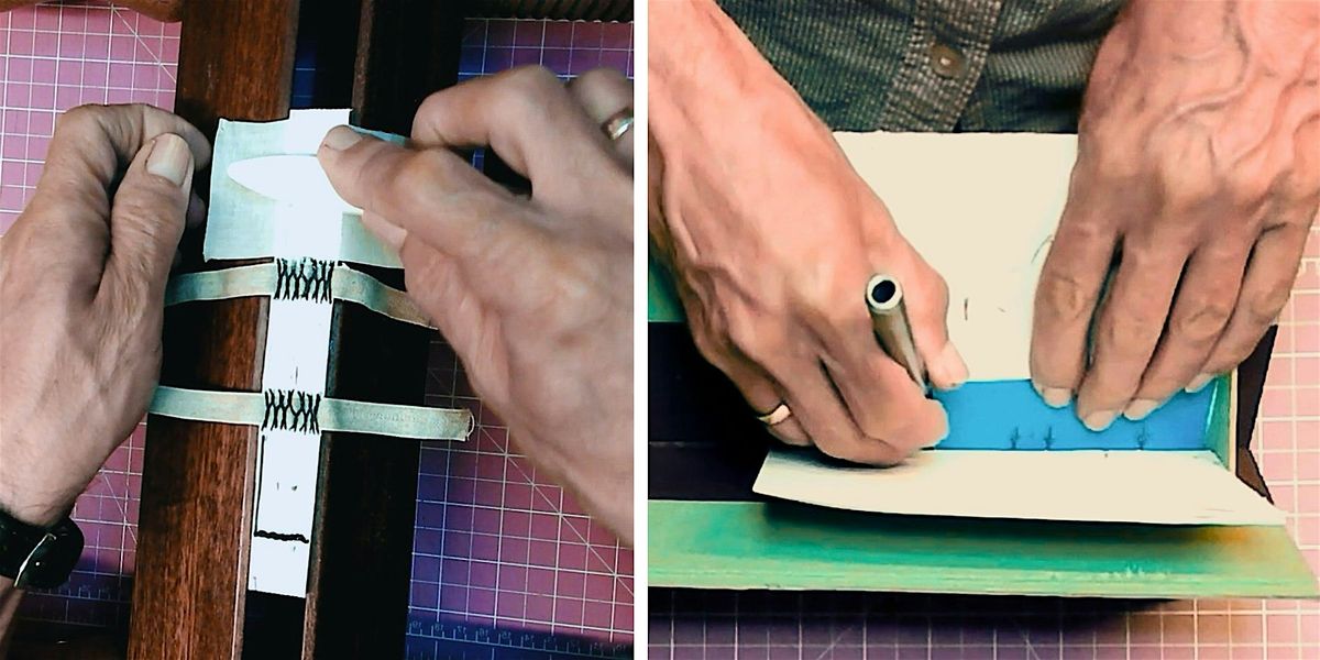 In addition to his traditional methods, Paul enjoys exploring alternative book construction techniques and occasionally rebinds old books to preserve them for future generations.