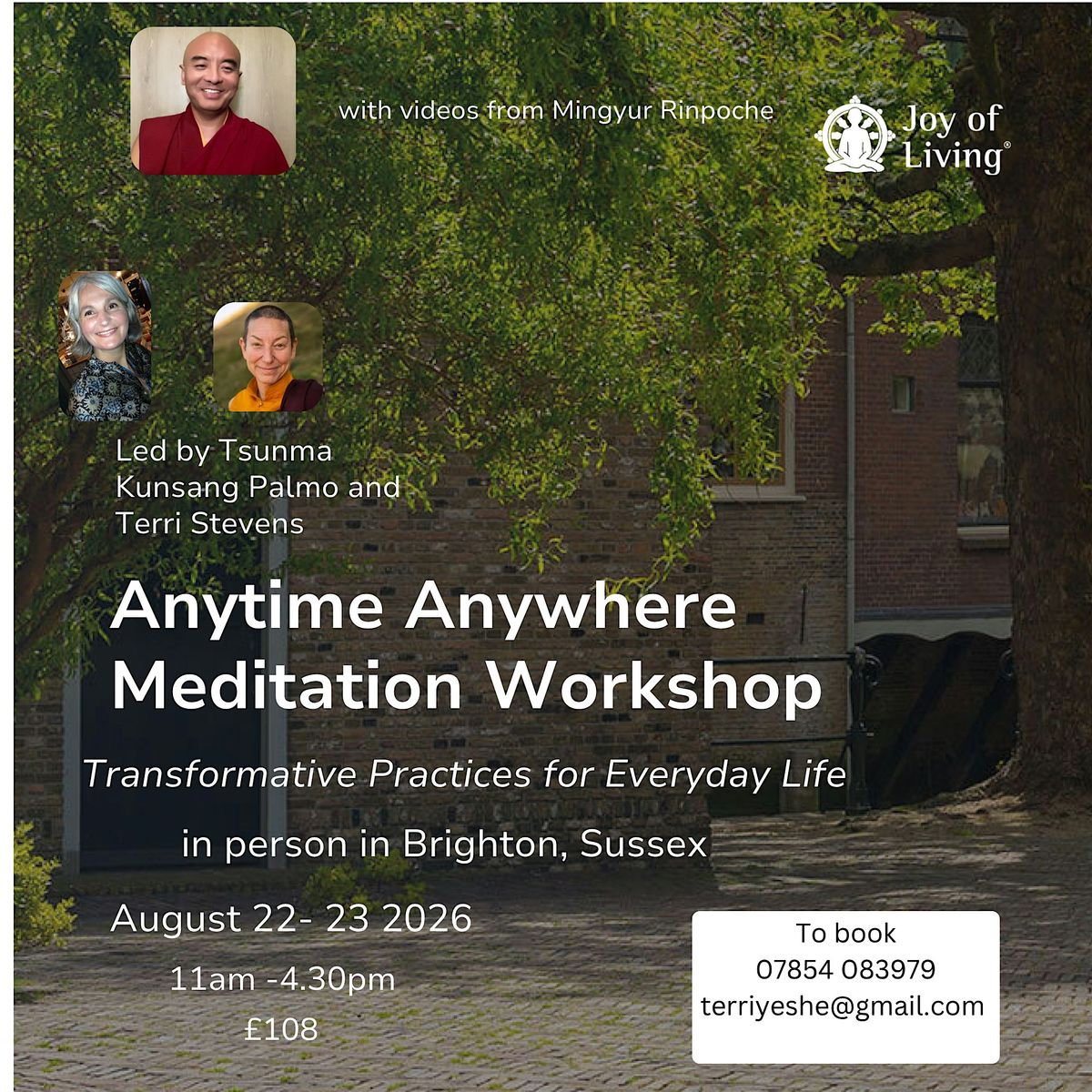 This two day programme will include video teachings by Mingyur Rinpoche, guided practices and community discussion and will be led by Tsunma Kunsang Palmo and Terri Stevens .