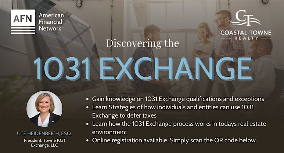 Come join us at Coastal Towne Realty on First Colonial Road in Virginia Beach, VA for an exciting event where you can learn all about the 1031 Exchange. Whether you're a seasoned investor or just starting out, this in-person and online event is perfect for anyone looking to expand their knowledge and network with like-minded individuals. Don't miss this opportunity to discover the benefits and intricacies of the 1031 Exchange in a friendly and informative setting. See you there!