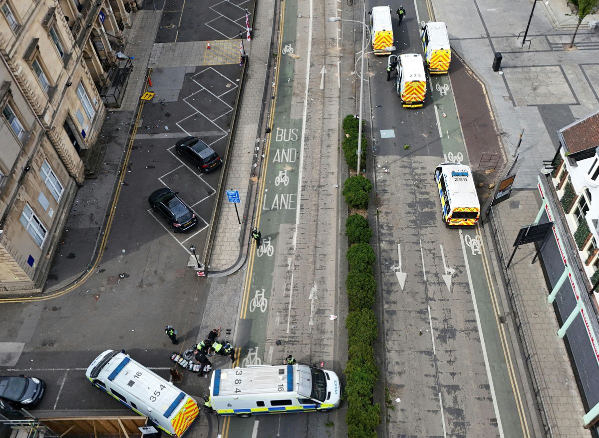 Photo: Aerial view of Kingston upon Hull anti-immigration riot Aug 2024 at The Royal Hotel, Hull