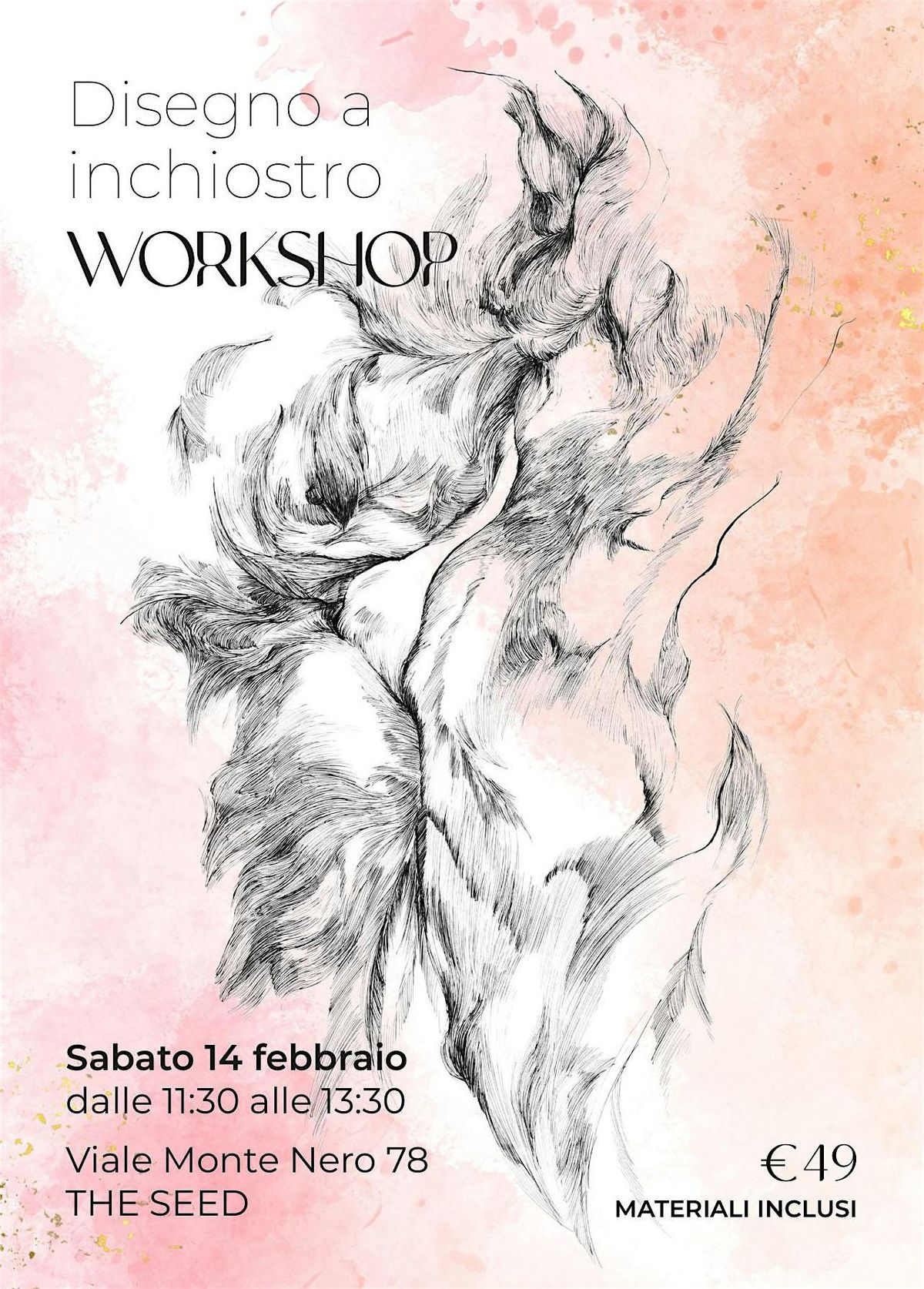 Disegneremo fiori dal vero con l'inchiostro, usando pennini, bastoncini e pennelli. Puoi scegliere lo stile che preferisci: realistico o astratto.