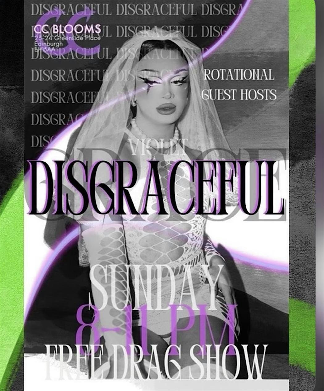 A cast of Disgraces line up to perform for you all. An extravaganza of drag, cabaret, live singing and laughs!