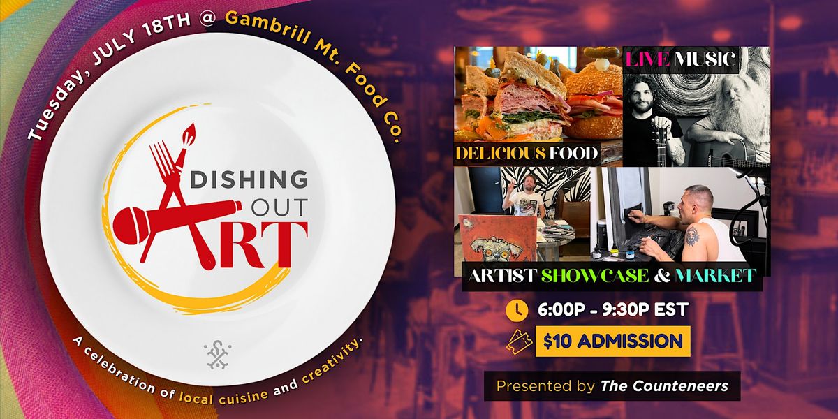 Don't miss this engaging and creative gathering! Join us Tuesday July 18th for DISHING OUT ART, presented by The Counteneers.