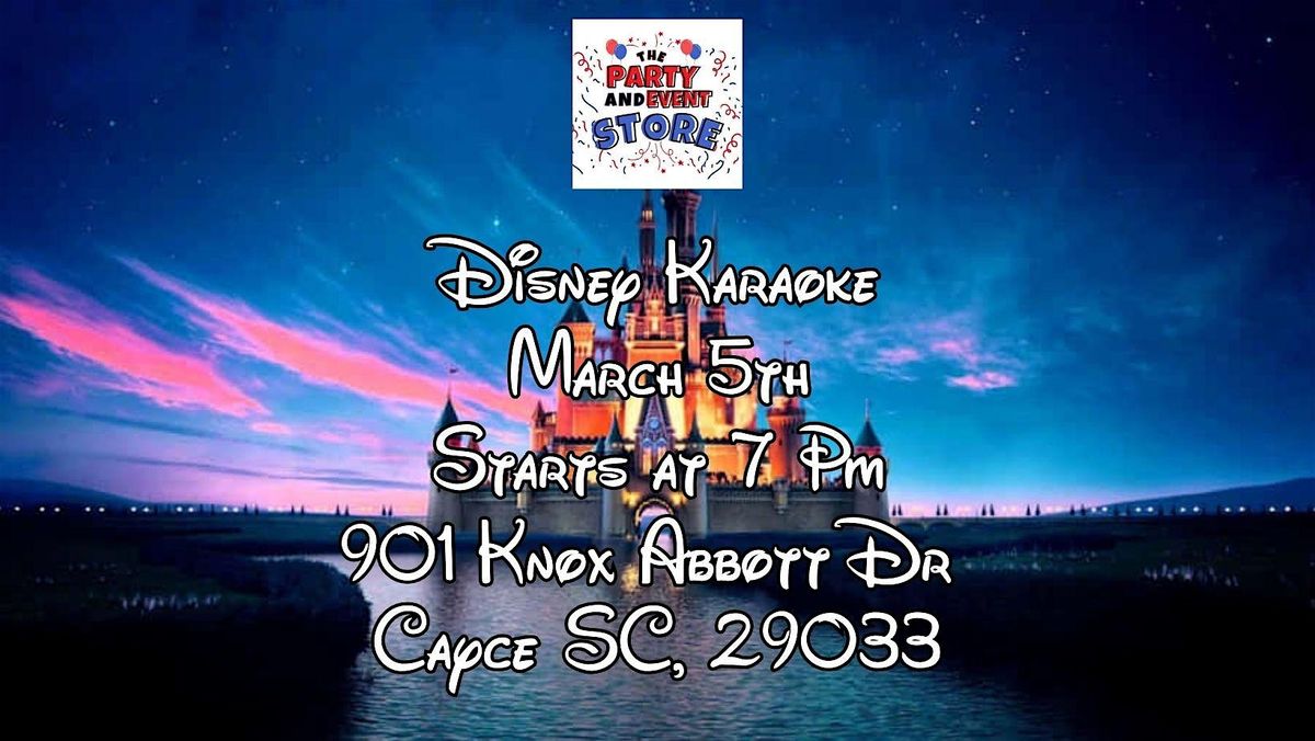 Get ready to belt out your favorite Disney classics in person! Join us for an awesome karaoke night filled with magic, laughter, and unforgettable tunes. Whether you're a fan of princesses, heroes, or sidekicks, this event is all about fun and letting your inner star shine. Don't miss out on the chance to sing your heart out with fellow Disney lovers right here at The Party and Event Store!