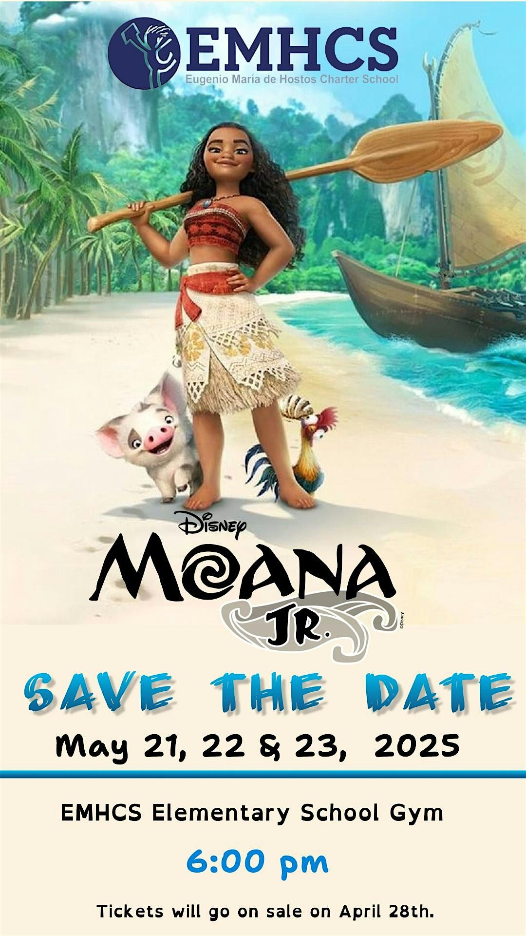 Welcome to the Disney Moana Jr. Musical event! Get ready to embark on an unforgettable journey filled with music, dance, and adventure. Join us for a magical evening with Moana and her friends. Don't miss out on this exciting opportunity to experience the beloved story of Moana come to life on stage. Grab your tickets now and get ready to set sail with us!
