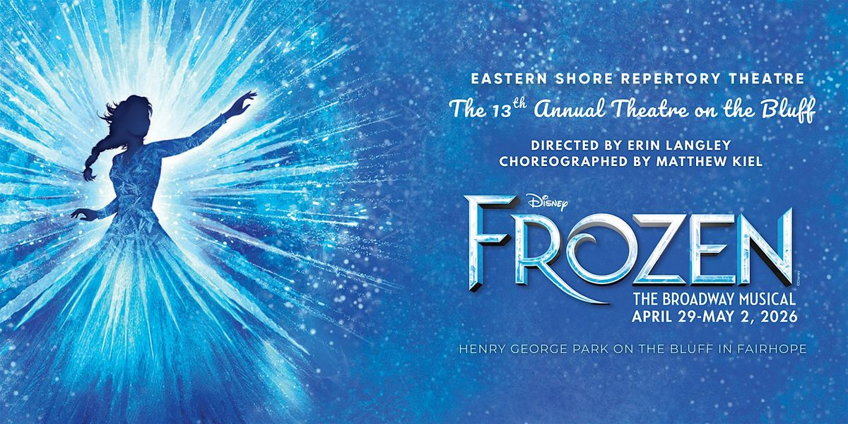For four unforgettable nights, Arendelle will rise under the open sky as Eastern Shore Repertory Theatre presents its 13th Annual Theatre on the Bluff production. Featuring beloved songs like “Let It Go,” “For the First Time in Forever,” and “Do You Want to Build a Snowman?”, Frozen is a breathtaking outdoor musical experience for audiences of all ages.